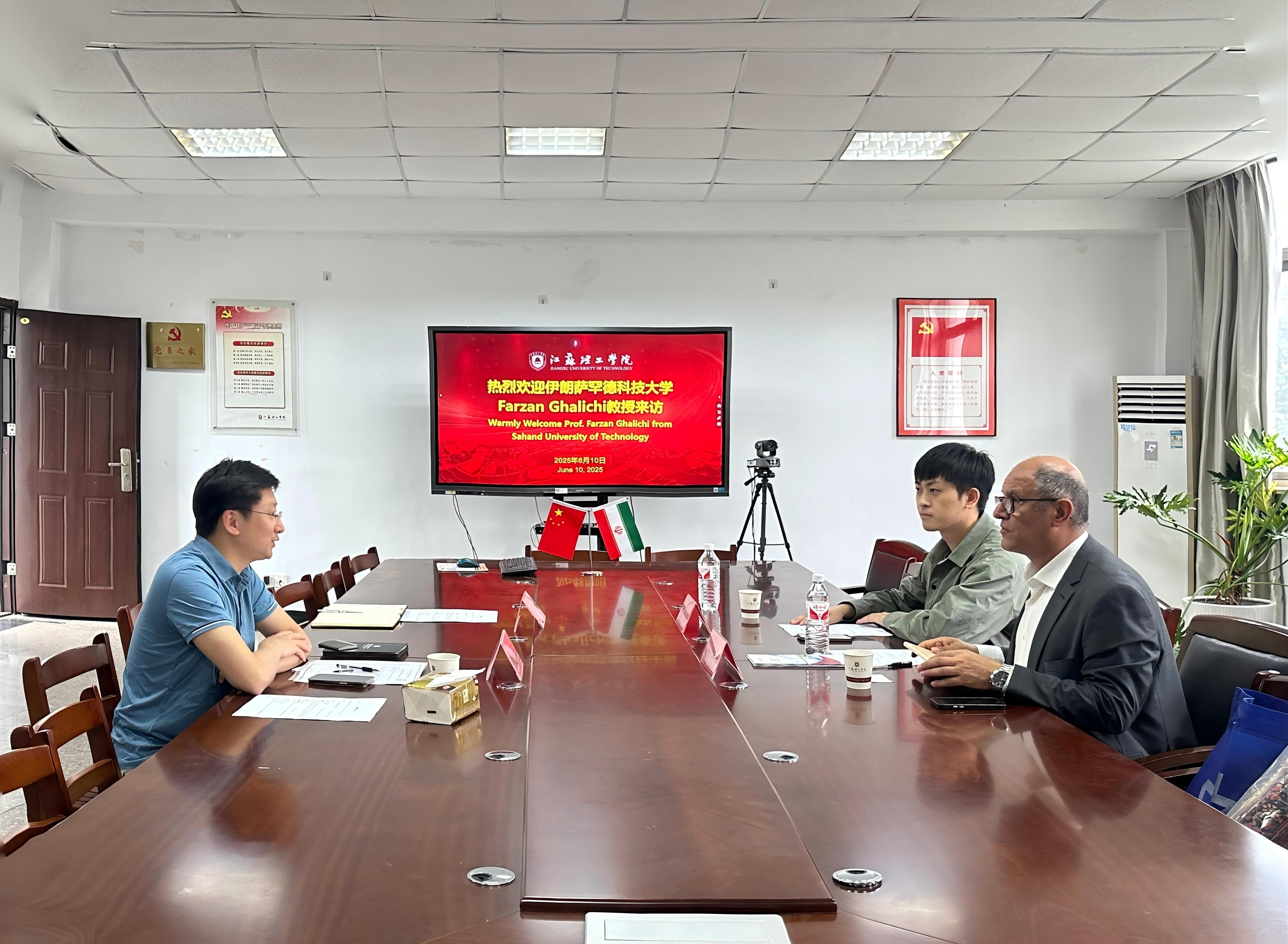 会上,国际合作与交流处代表学校对Farzan Ghalichi教授的到访表示热烈欢迎,并简要介绍了我校的办学历史、学科优势及国际合作交流成果。Farzan Ghalichi教授感谢我校的热情接待,并详细介绍了萨罕德科技大学的基本情况、学科特色及科研实力。双方围绕教育合作、学术研究、文化交流等领域展开深入探讨,一致同意在联合科研项目、国际会议、学术研讨会等方面加强合作,共同推动科学知识共享与出版物交流。此外,双方还就学术人员互访、学生交换、研究数据与技术仪器共享等议题达成初步合作意向。